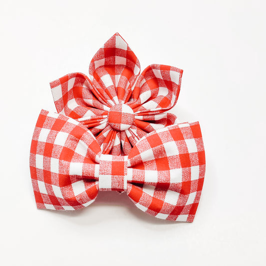 Red Gingham Dog & Cat Bow Tie/ Collar Flower